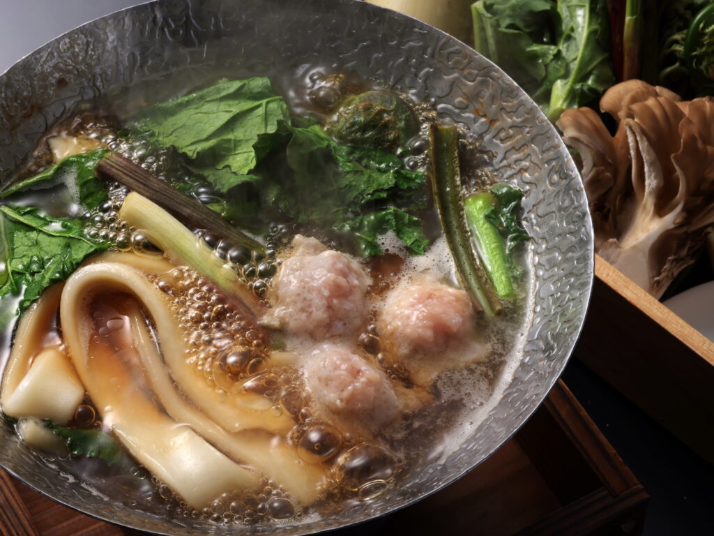 鍋には、地元の自慢「赤城牛」と「赤城鶏」のつみれを。
